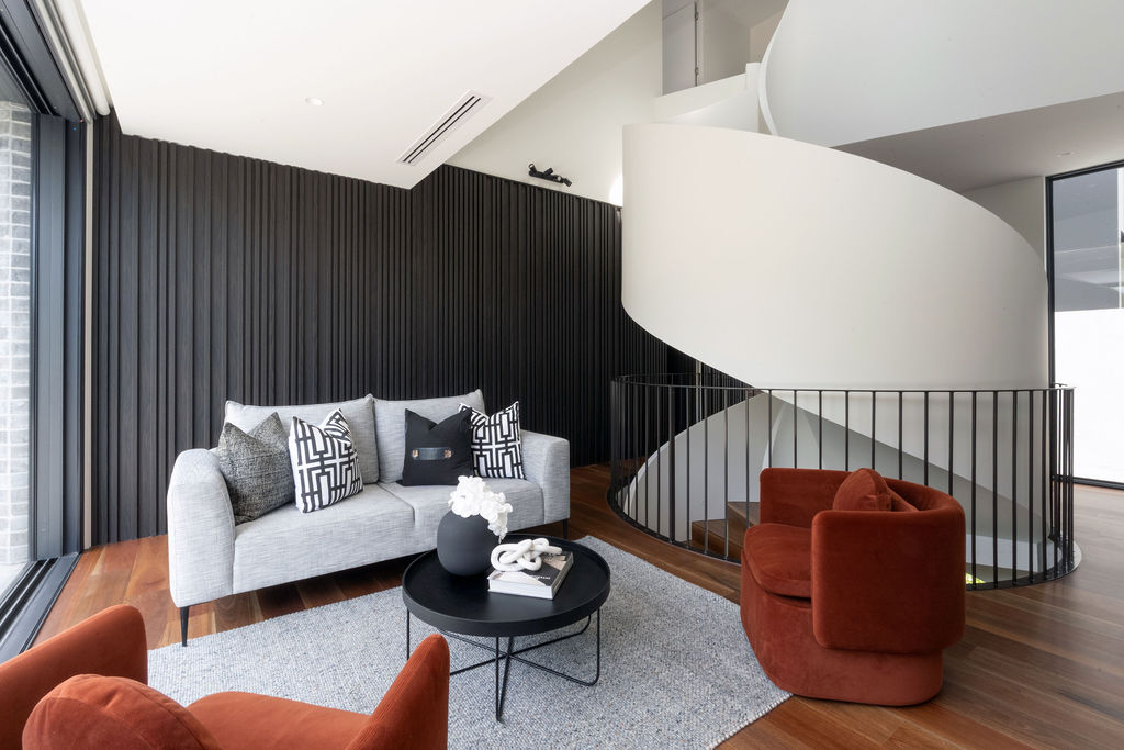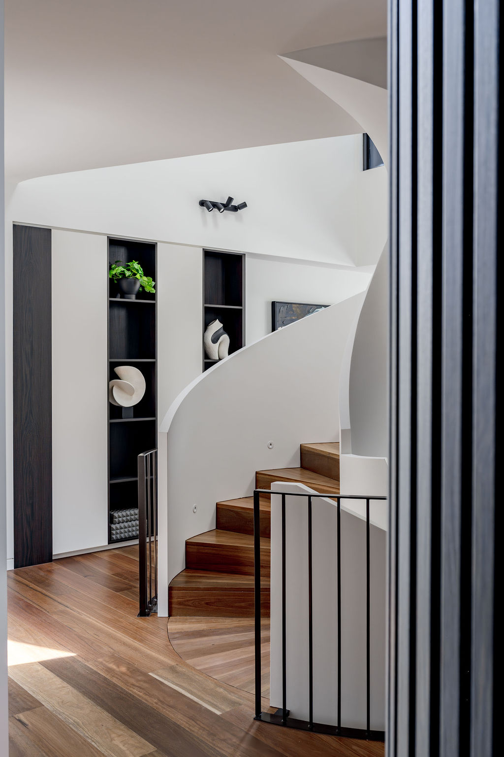 The central feature of both houses is the helical staircases, which were contructed by S&A stairs and finished by RC Projects.